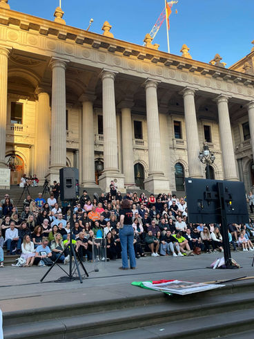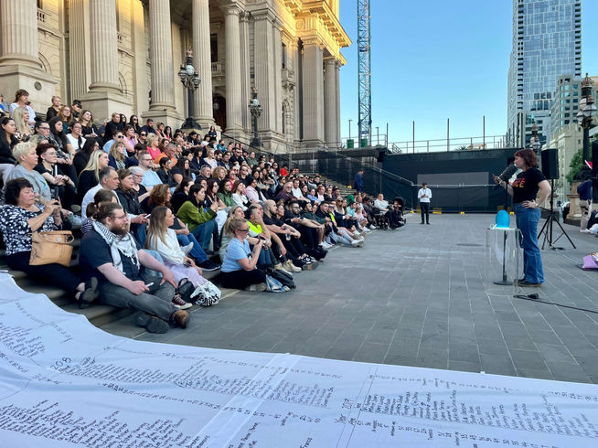 Around 300 people gathered at Victoria's Parliament House for the Candlelight Vigil in memory of Celeste Manno. As the sun set, the steps of Parliament were illuminated with candles, creating a poignant space to celebrate Celeste’s life, mourn her loss, and stand in solidarity with victims of violence and their families.