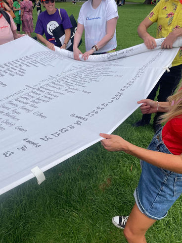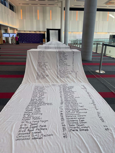 From this day onwards I continue to add the names of women and children who have lost their lives to gendered violence to the petition. I'd like to thank my team of volunteers for their support in carrying The Lost Petition at the M4J 2022 event.