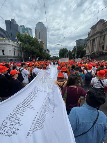 The Walk Against Family Violence (WAFV) is an annual Melbourne event supported by Respect Victoria to raise awareness about family and domestic violence. Held each November, it brings together individuals, families, and organizations to support victim-survivors, promote respectful relationships, and advocate for a violence-free future. I would like to acknowledge the volunteers who helped carry The Lost Petition it on the day.
